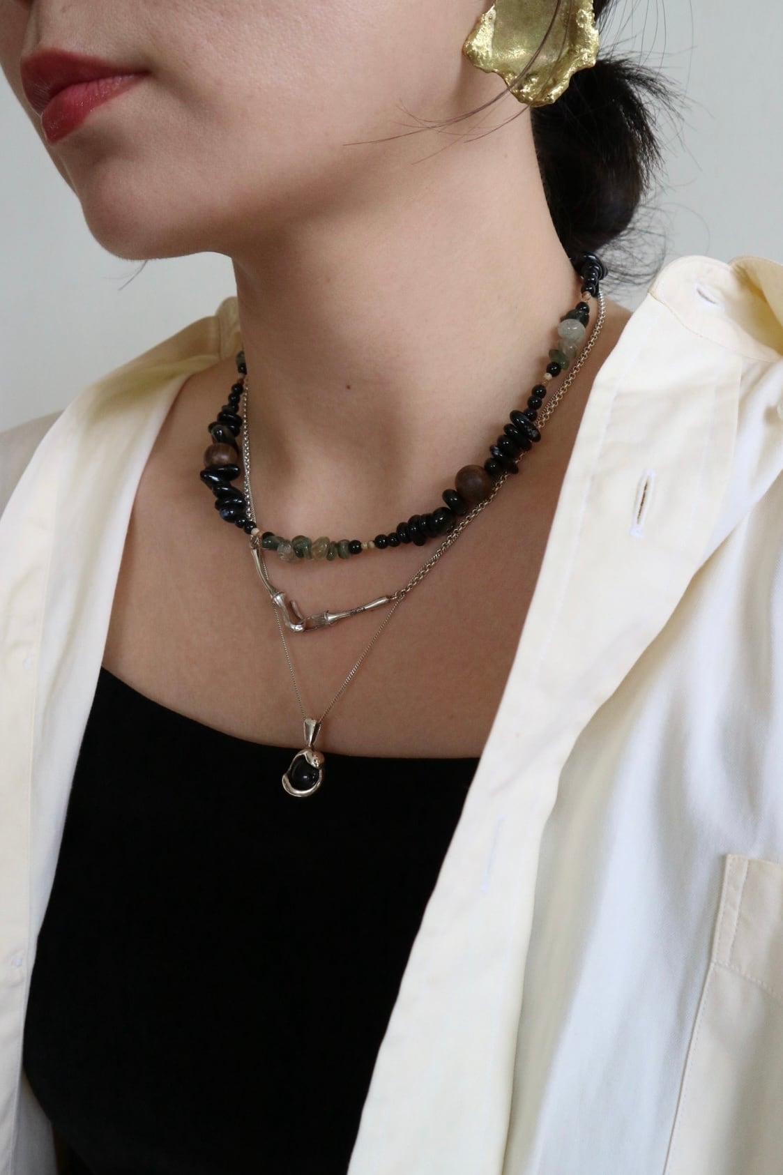 全て天然石で組んだ1点もの。 金属パーツは全てサージカルステンレスなので金属アレルギーをお持ちの方も安心して、ご着用頂けます。 40cm material | ステンレスワイヤー