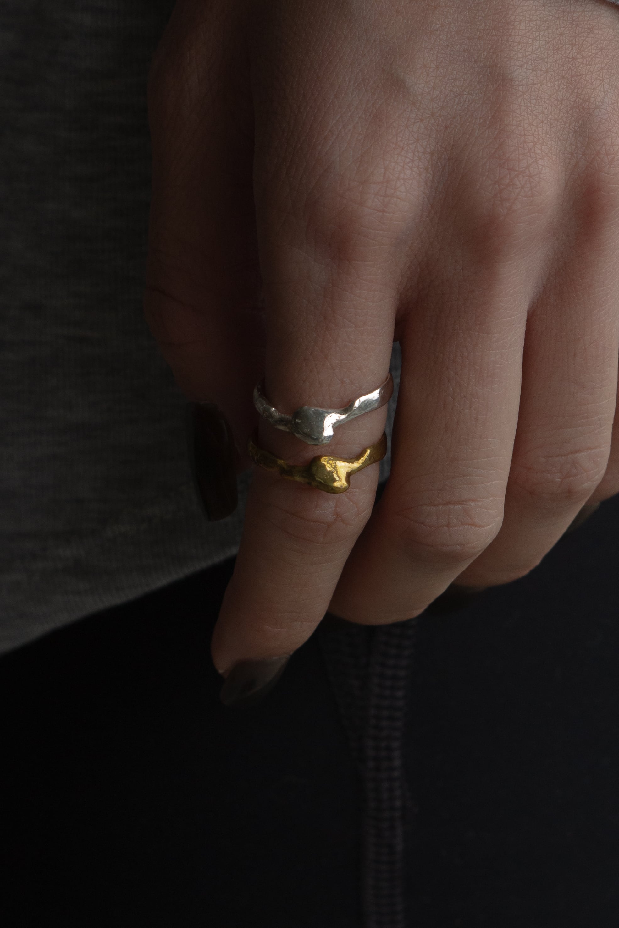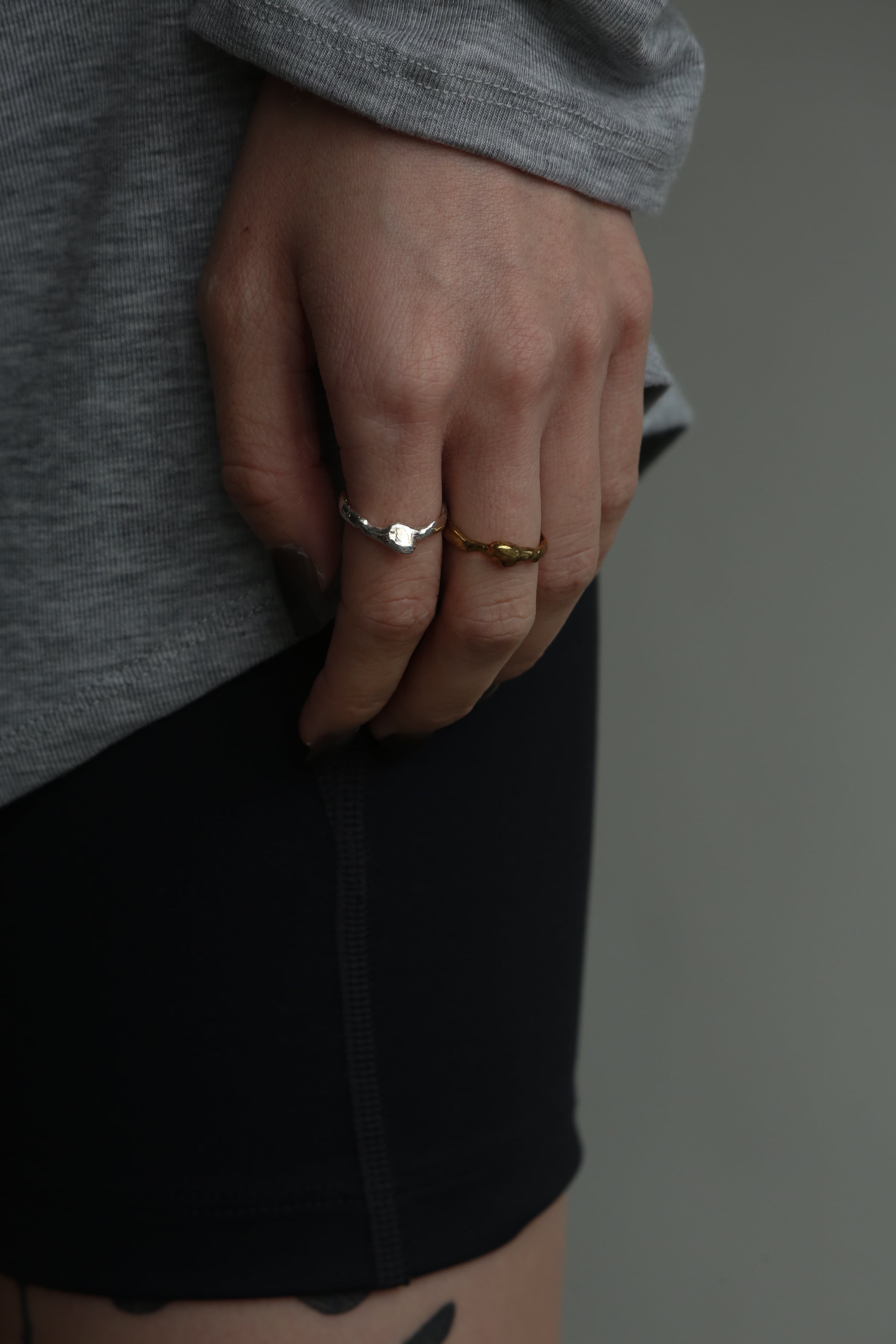 ブランドのアイコンアイテムであるmelty ring 着ける人の肌や生活に溶け合い、側で共存できるようにと想いを込めたアイテムです。 material | silver925 or 真鍮 12号