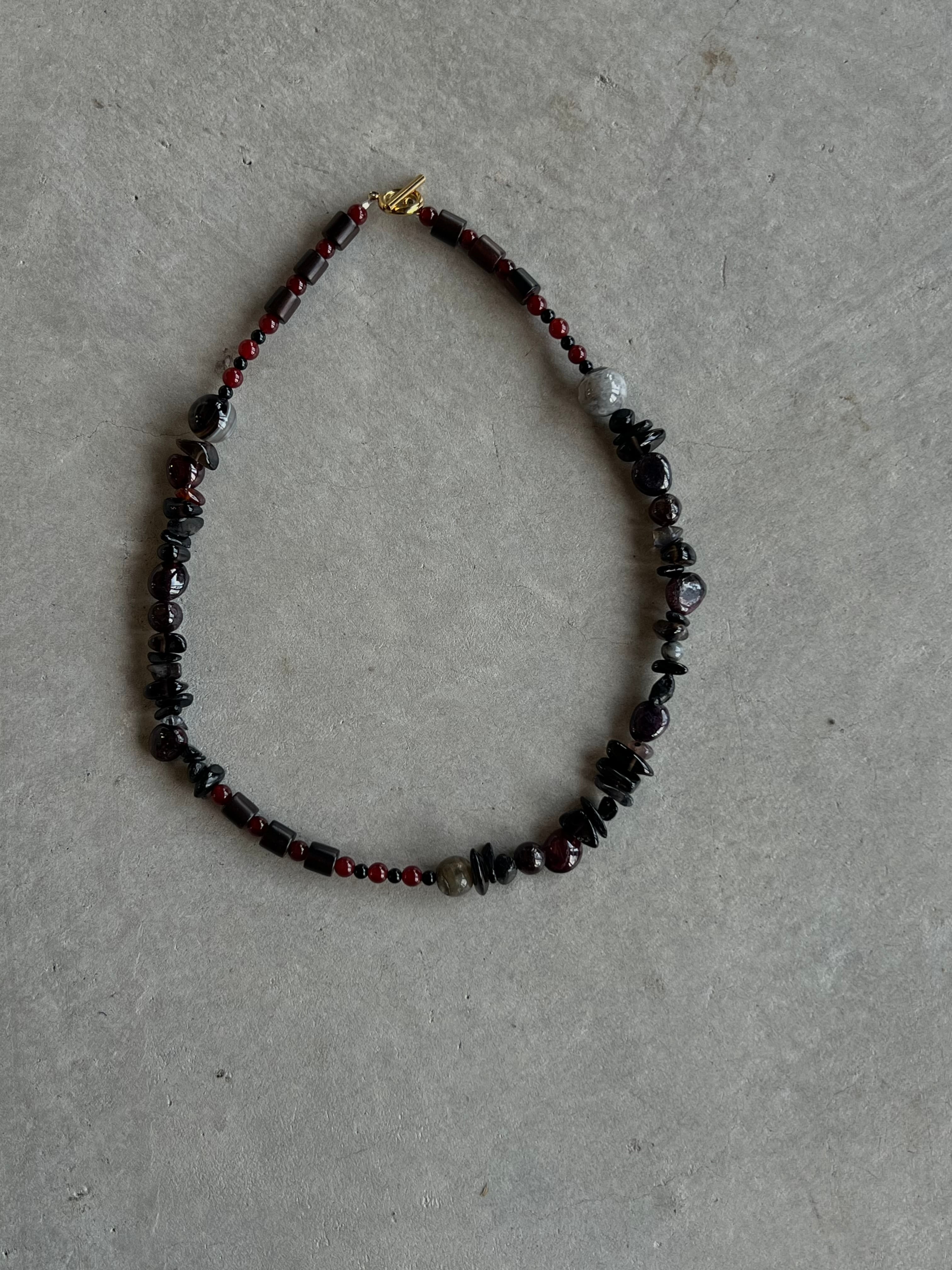 アレルギーフリーで着用頂ける、天然石ビーズを贅沢に使用したネックレス。