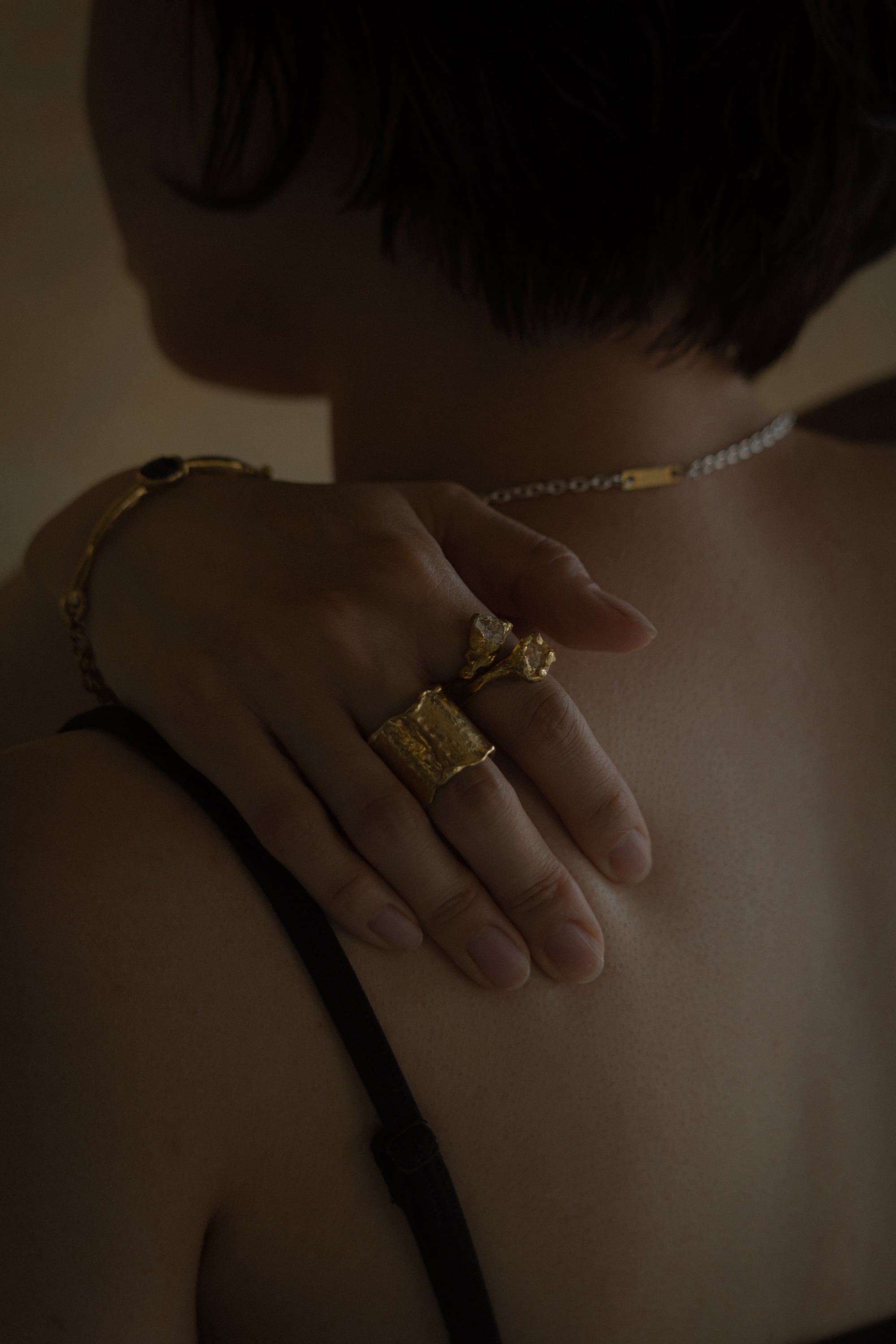 大振りなリング。リング1周異なるデザインになっているので毎日気分でお好きな面をお楽しみください。 サイズ 14号 リング幅 2cm 普段のサイズより1サイズ大きめでのご着用をオススメ致します