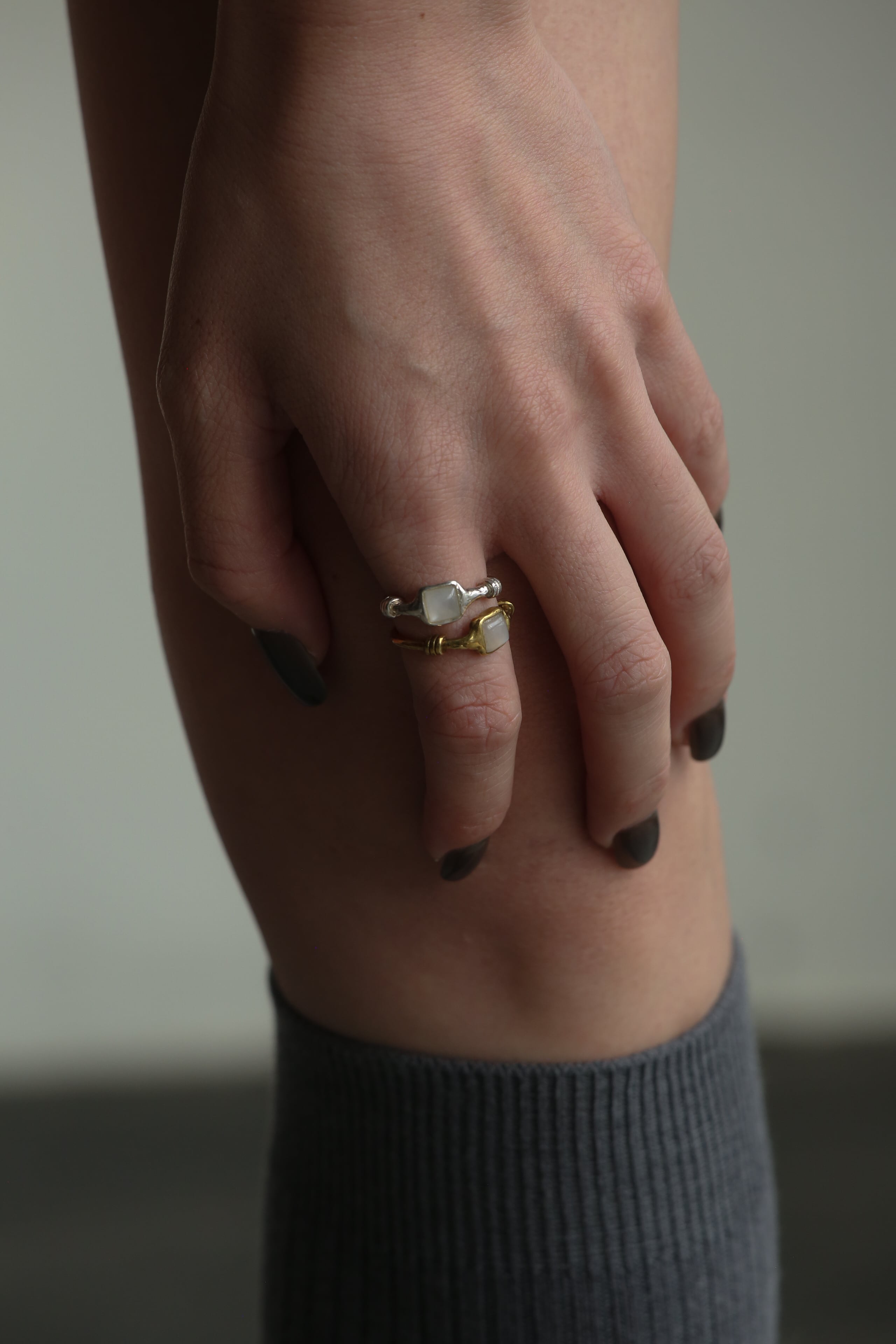 愛をテーマにした 24'Christmas collection ホワイトムーンストーンを纏わせたヴィンテージライクなリングに仕上げました。 ※写真後半にある赤色の石の販売は終了致しました material | brass or silver925 stone | whitemoon stone #10